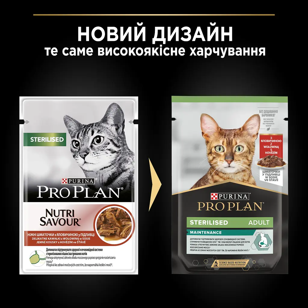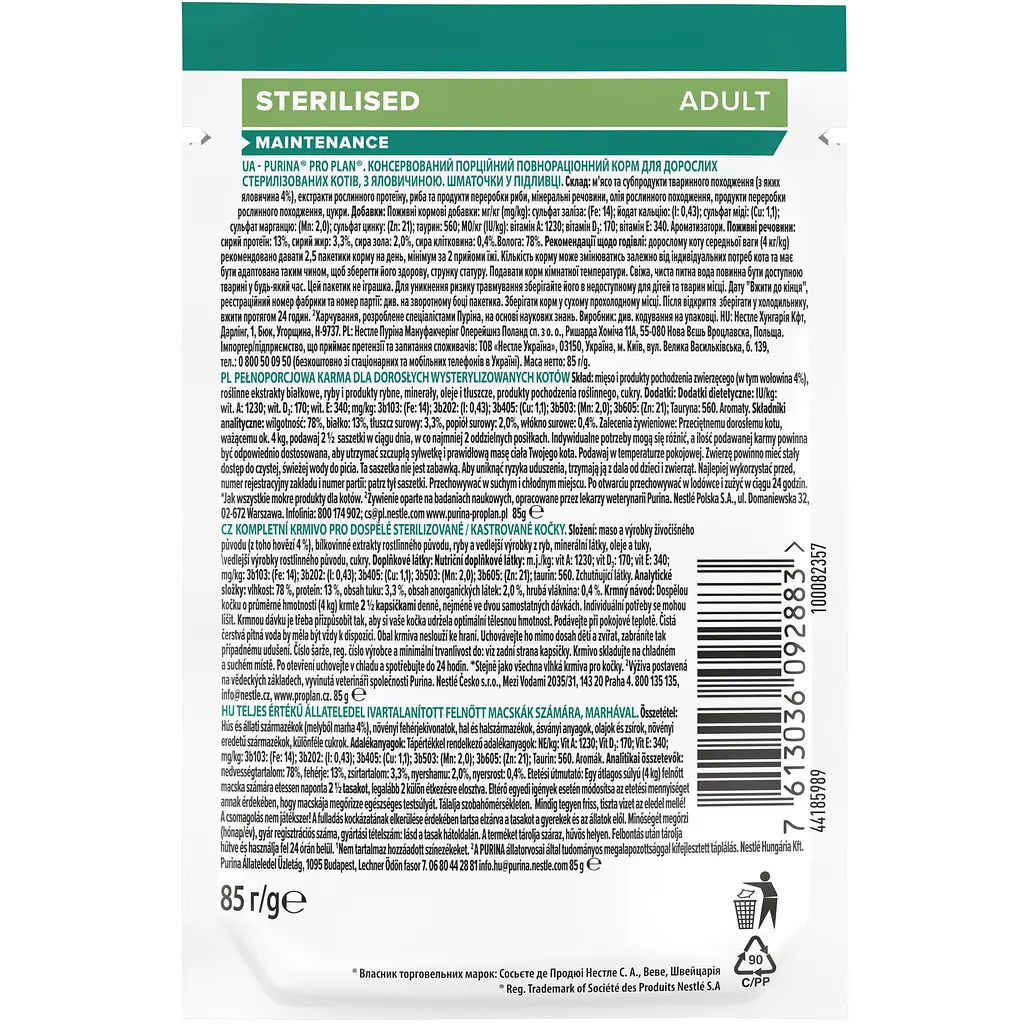 Вологий корм Purina Pro Plan Sterilised — консервований порційний повнораціонний корм для дорослих стерилізованих котів.