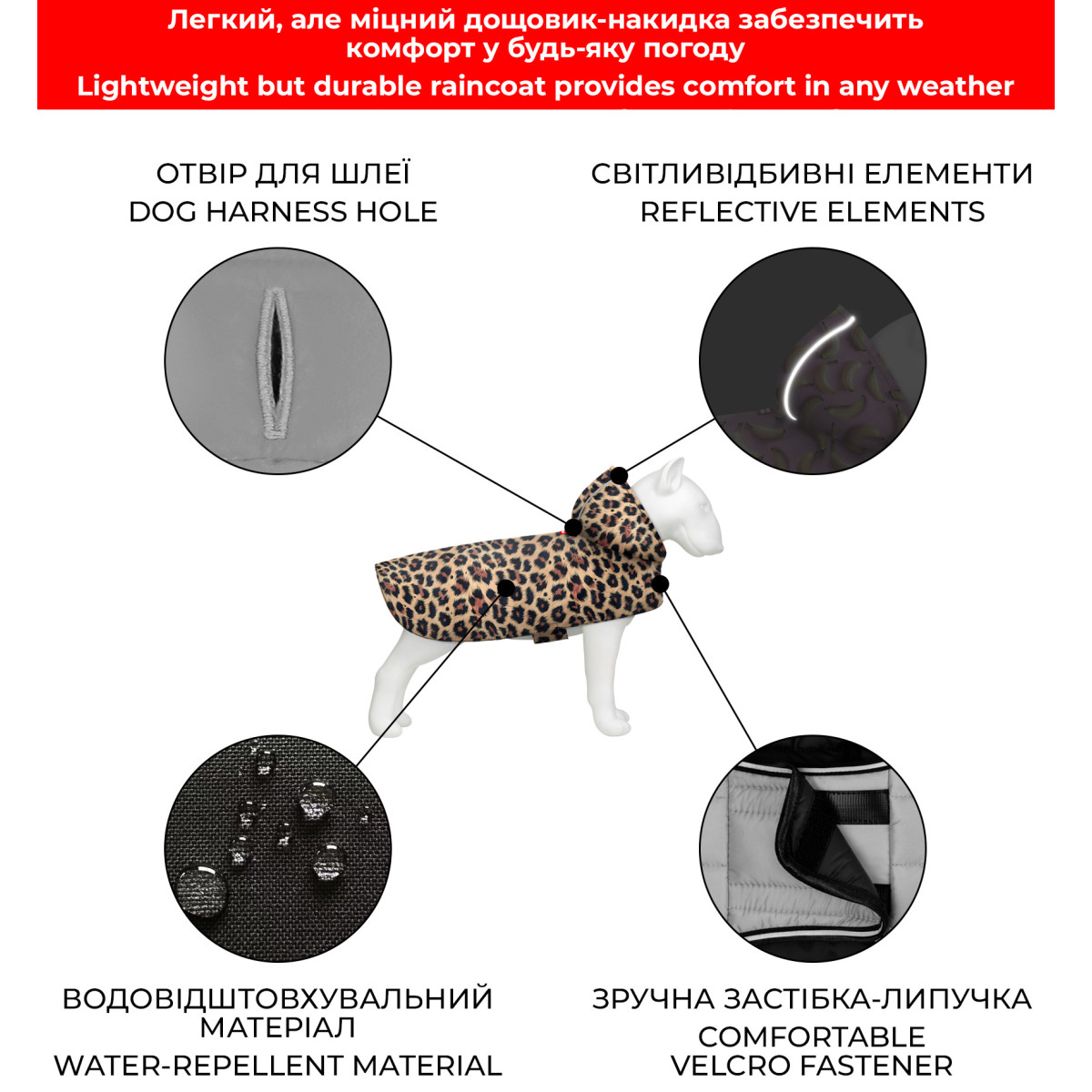 Дощовик-накидка з капюшоном для собак WAUDOG Clothes малюнок Леопард M, А 40-43 см, B 52-62 см ,С 33-42 см