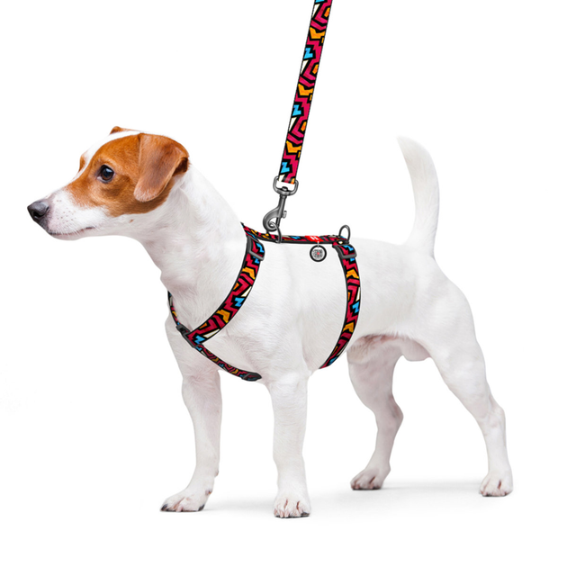 Шлея для собак анатомічна WAUDOG Nylon з QR паспортом, малюнок Графіті, розмір М