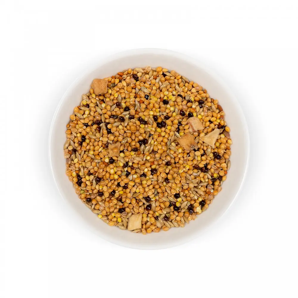 просо жовте, просо червоне, канаркове насіння, просо чорне, чуміза, насіння льону, насіння конопель, сушене яблуко.