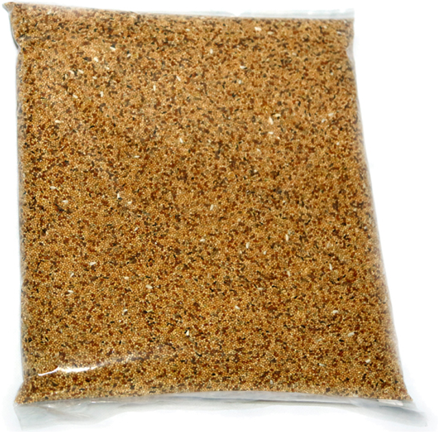 Зернова суміш також збагачена подрібненими мушлями устриць, які є відмінним природним джерелом кальцію, який необхідний для належної будови пір’я, кісток, пазурів.