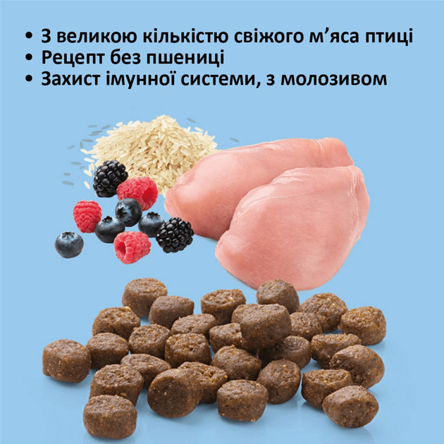 - містить благородне зерно одного виду, не містить кукурудзу, пшеницю та сою;