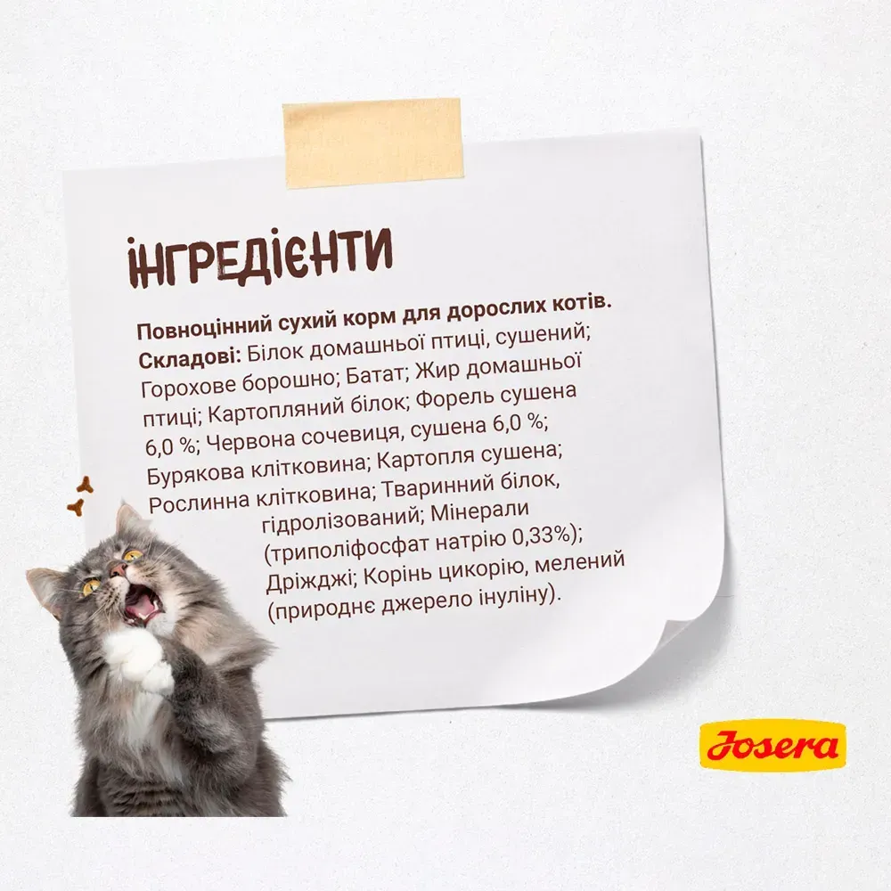 Корм Josera для дорослих котів, з чечевицею та форелю