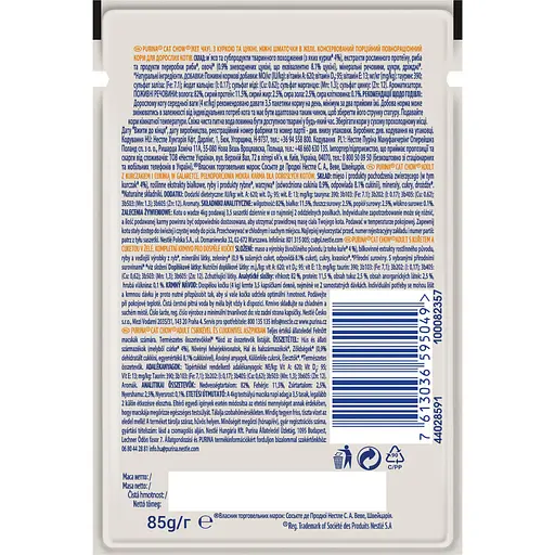 Повнораціонний вологий корм Cat Chow Adult із куркою та цукіні в желе для дорослих котів старше 1 року. Є збалансованим раціоном, що забезпечує організм улюбленця необхідними поживними речовинами.