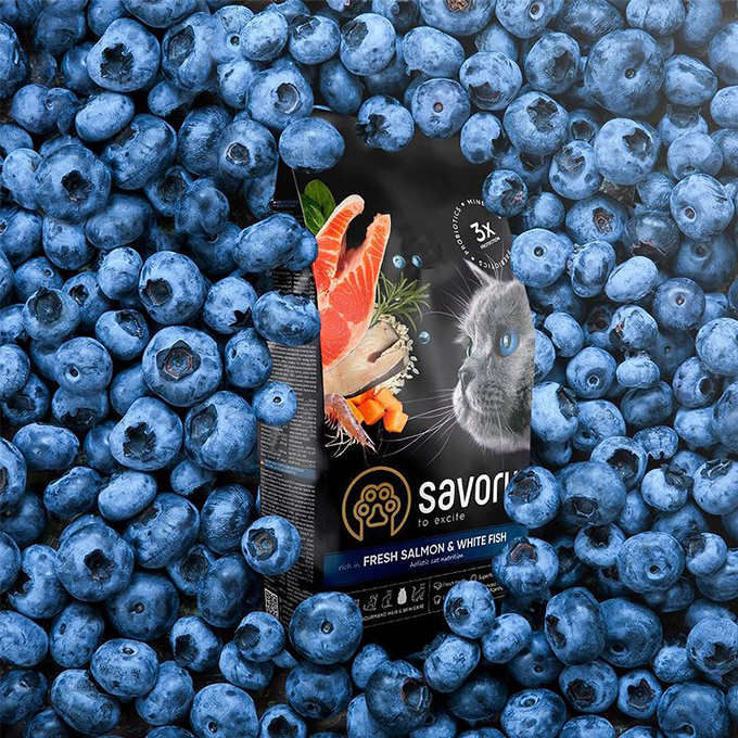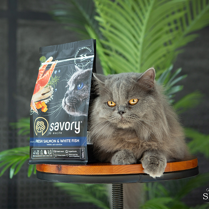 Сухий корм для довгошерстих кішок Savory зі свіжим лососем і білою рибою 400 г