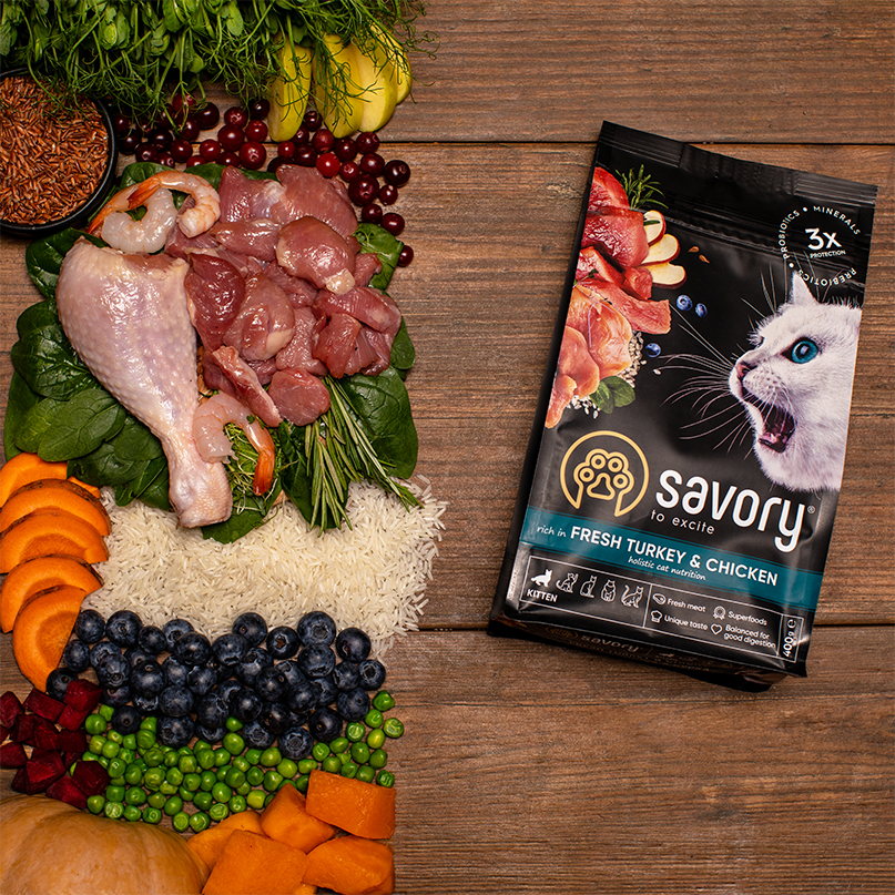 Корм SAVORY сухий для кошенят всіх порід зі свіжою індичкою та куркою 2кг, шт