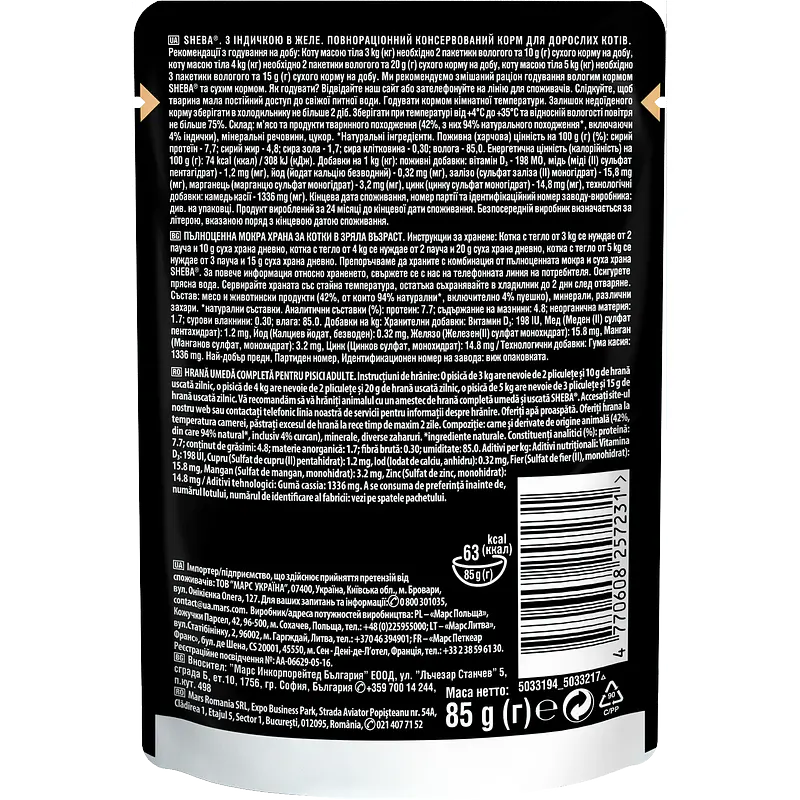 - Містить належний рівень поживних речовин, що задовольняє специфічні харчові потреби кошенят і дорослих котів.