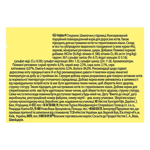 Рекомендації щодо годування (г/добу): див. таблицю на пакуванні.