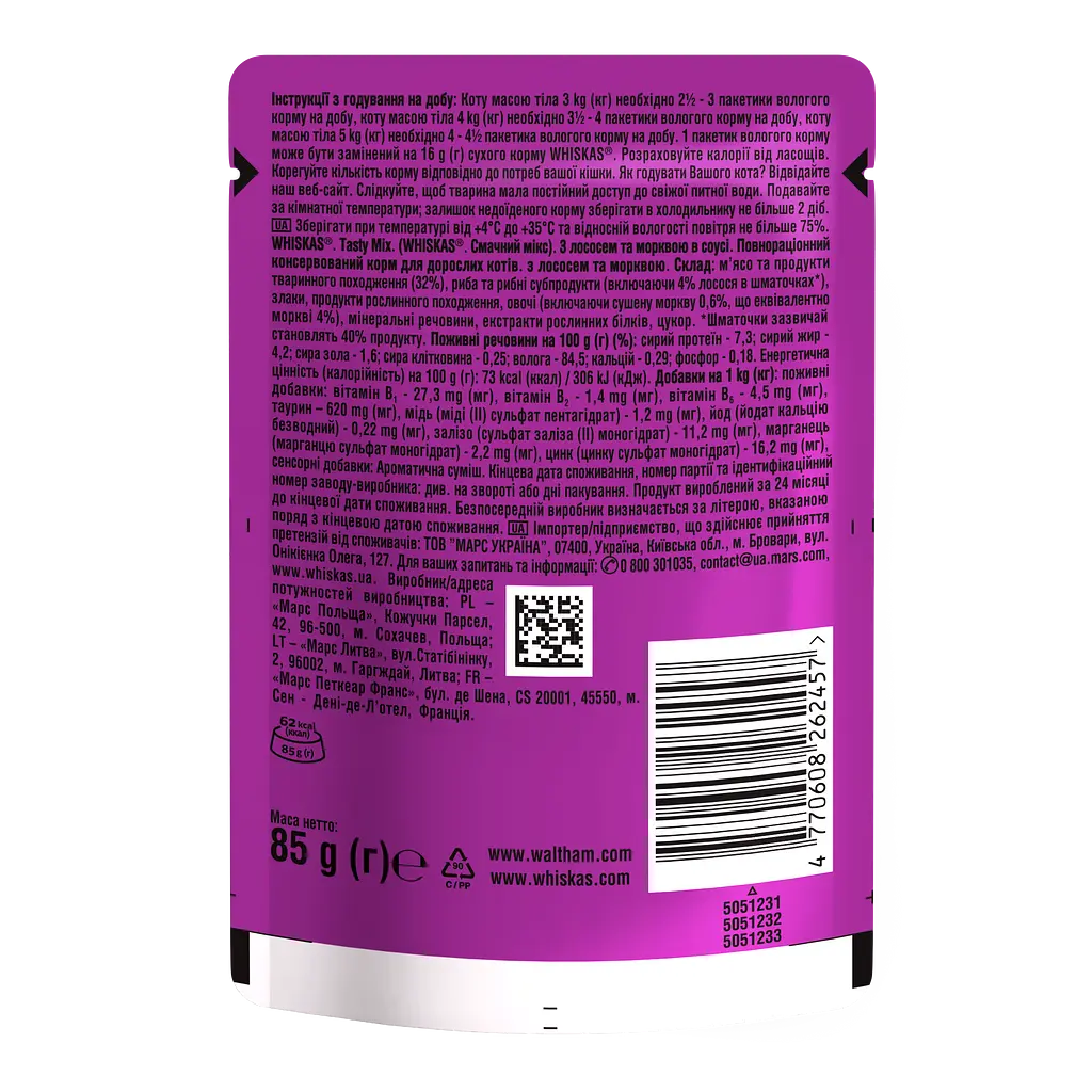 Віскас Tasty Mix лосось,морква 28*85Г, шт