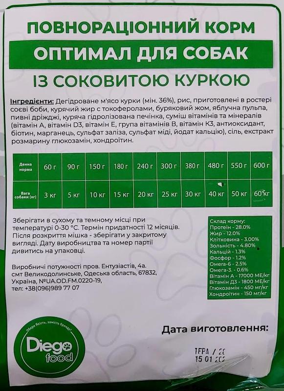 Рекомендації щодо годування (г/добу): див. таблицю на пакуванні.