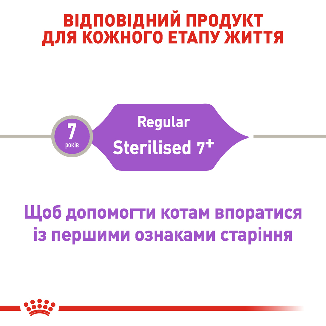 Після стерилізації тварини стають спокійнішими та схильнішими до підвищеного апетиту, тому їхнє харчування потребує особливої уваги. Це особливо важливо після 7-річного віку, коли з’являються перші ознаки старіння та зростає ризик розвитку хвороб. У цей період потрібен адаптований раціон від бренду Royal Canin.