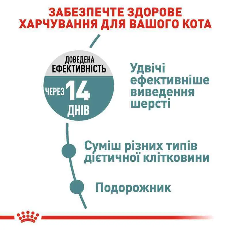 Вдвічі ефективніше виведення шерсті природним шляхом вже після 14 днів годування виключно раціоном Royal Canin Hairball Care.