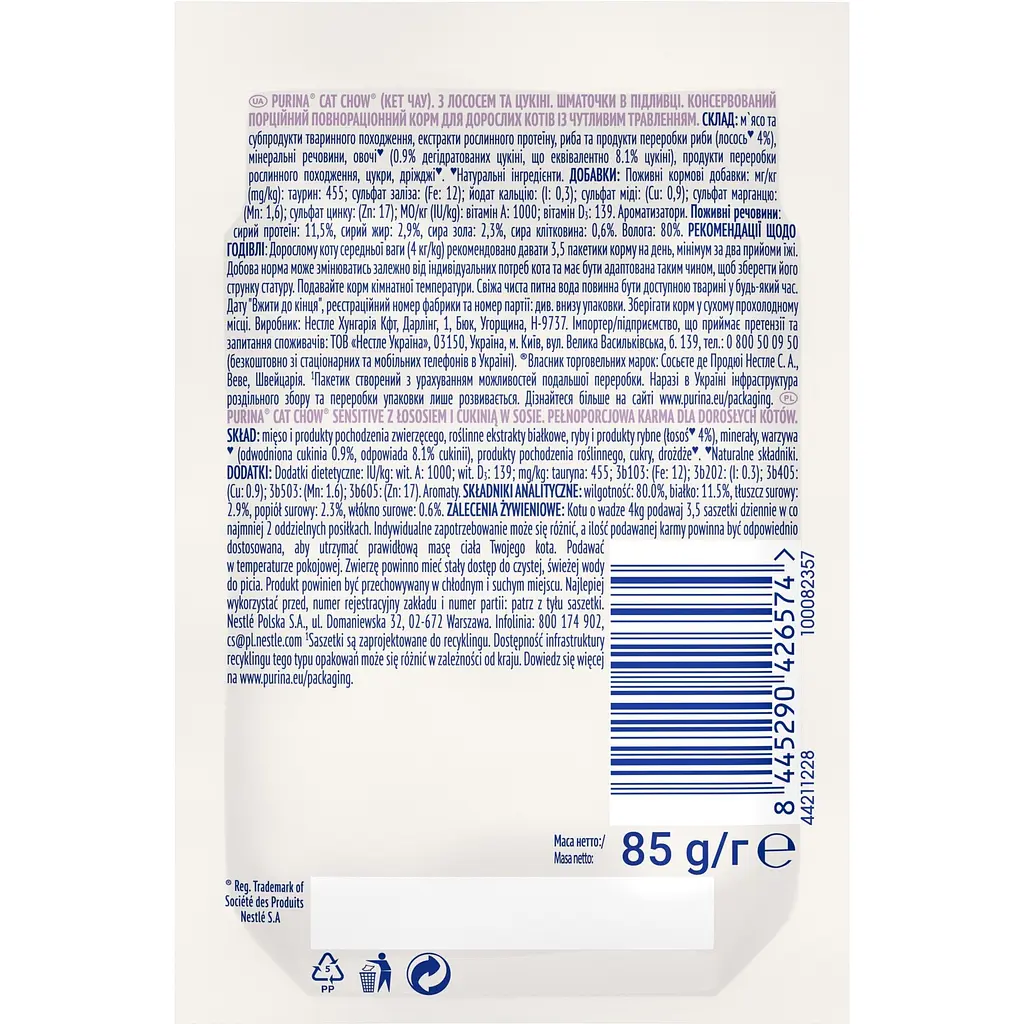 Hairball Care соус. Повнораціонний вологий корм (шматочки в соусі) для дорослих котів віком від 12 місяців, схильних до накопичення грудочок шерсті в шлунково-кишковому тракті.