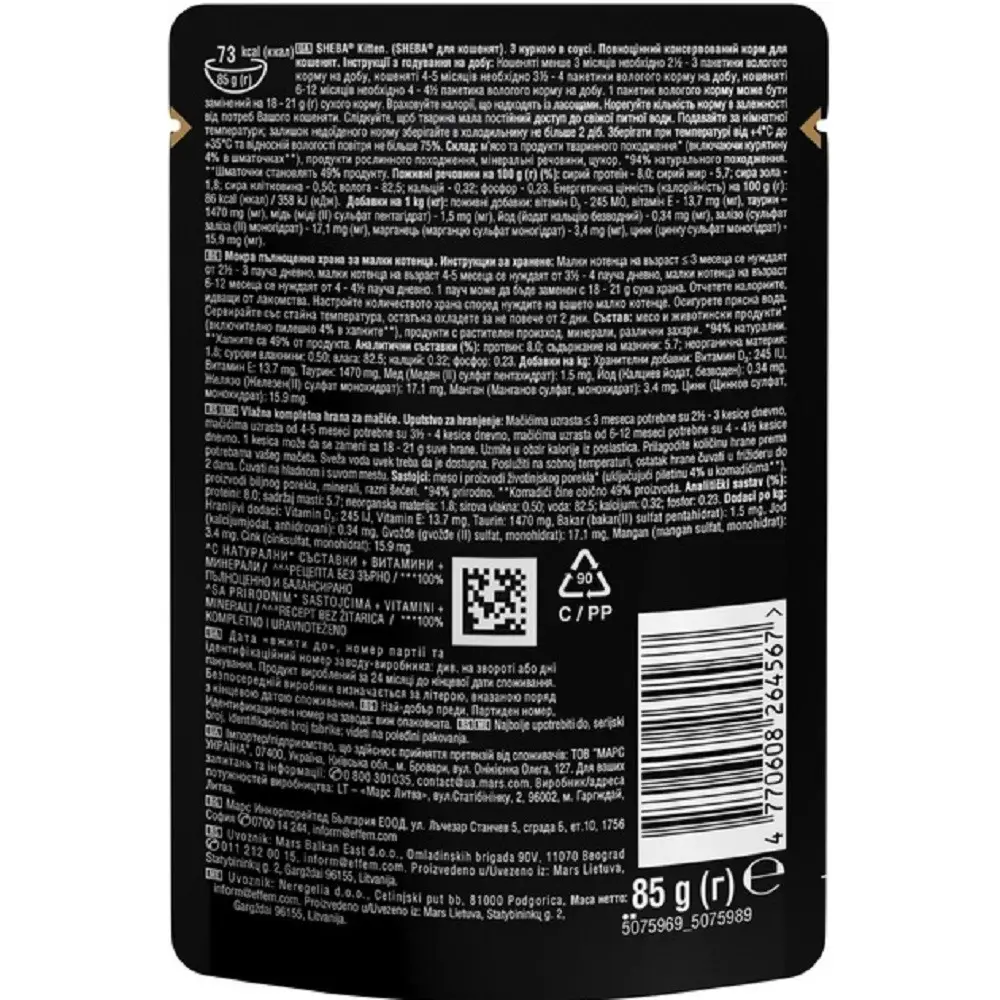 Sheba Kitten Chicken Шеба пауч для кошенят із куркою в соусі 85г