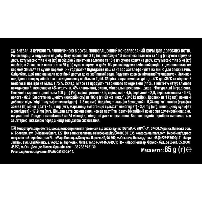 Вологий корм для котів Sheba з куркою та яловичиною в соусі 85г, шт