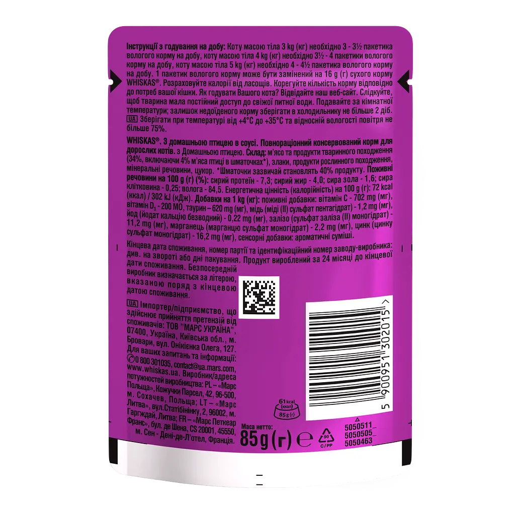 Віскас ДОМ.ПТИЦЯ В СОУСІ 28*85Г, шт