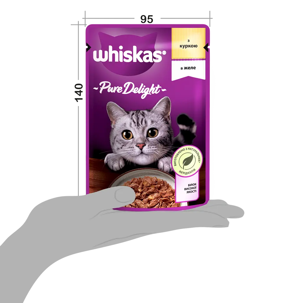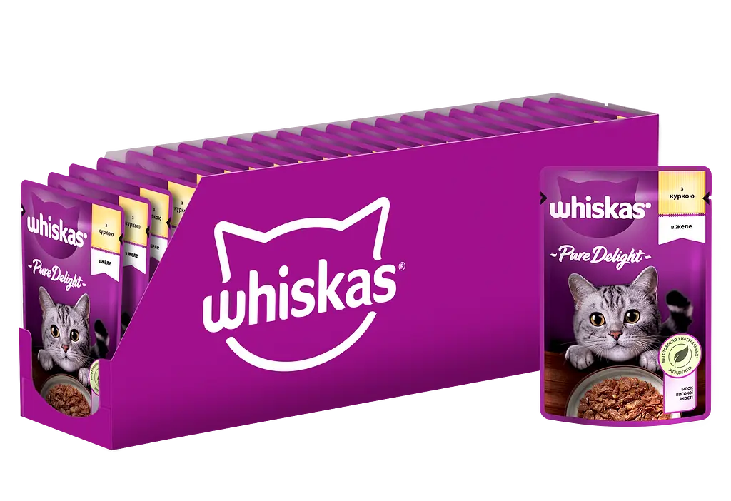 Вологий корм для кішок Whiskas Pure Delight – повнораційний консервований корм для дорослих котів.