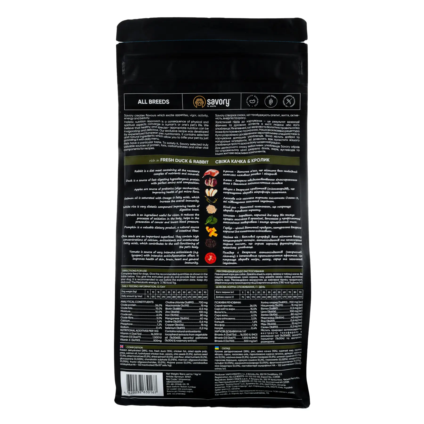 Корм SAVORY сухий для всіх порід зі свіжою качкою й кроликом 1кг, шт