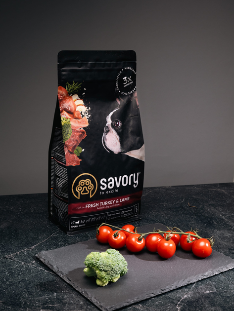 Корм SAVORY сухий для собак малих порід зі свіжим ягням та індичкою 1кг, шт