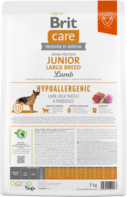 Корм для молодих собак великих порід Brit Care Dog Hypoallergenic Junior Large Breed гіпоалергенний з ягням 3 кг