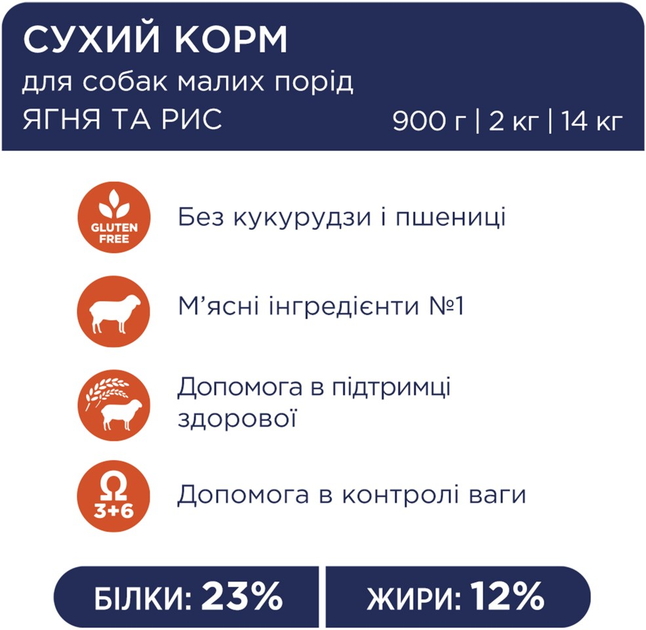 | Розмір тварини | Маленькі породи (3 – 10 кг доросла собака), Мініатюрні породи (до 3 кг доросла собака) |