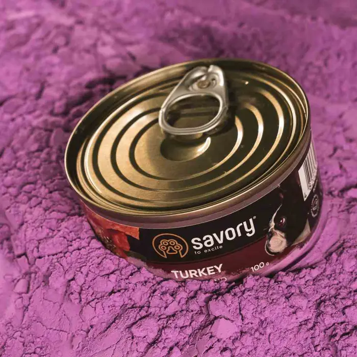 Savory — повнораціонний вологий корм з індичкою, створений для собак усіх порід. Цей корм пробудить у вашого улюбленця життєву енергію та забезпечить його усіма необхідними поживними речовинами. Ексклюзивна рецептура, розроблена досвідченими європейськими спеціалістами, поєднує корисні та натуральні інгредієнти, які підтримують здоров’я вашого собаки та дарують йому задоволення від щоденного прийому їжі.