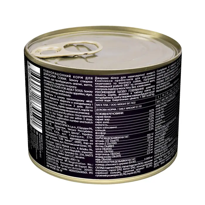 Savory — повнораціонний вологий корм з індичкою, створений для собак усіх порід. Цей корм пробудить у вашого улюбленця життєву енергію та забезпечить його усіма необхідними поживними речовинами. Ексклюзивна рецептура, розроблена досвідченими європейськими спеціалістами, поєднує корисні та натуральні інгредієнти, які підтримують здоров’я вашого собаки та дарують йому задоволення від щоденного прийому їжі.