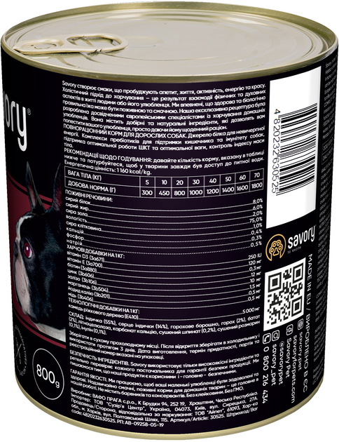 Ексклюзивна рецептура корму була розроблена досвідченими європейськими фахівцями з харчування хатніх улюбленців. Використовуючи холістичний підхід, вдалося створити біологічно відповідний, здоровий раціон для собак, який є таким корисним і смачним, що лапки оближеш. Поєднання добірних натуральних інгредієнтів дає можливість піклуватися про здоров’я чотириногого, а вишуканий смак — дарувати йому насолоду від щоденного споживання корму Savory.