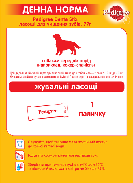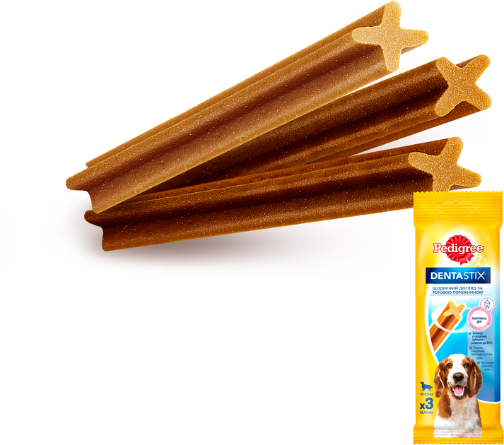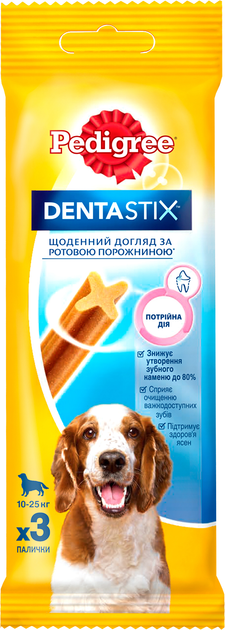 Pedigree Denta Stix — жувальні ласощі для собак середніх порід (вагою від 10 кг до 25 кг)