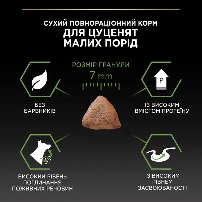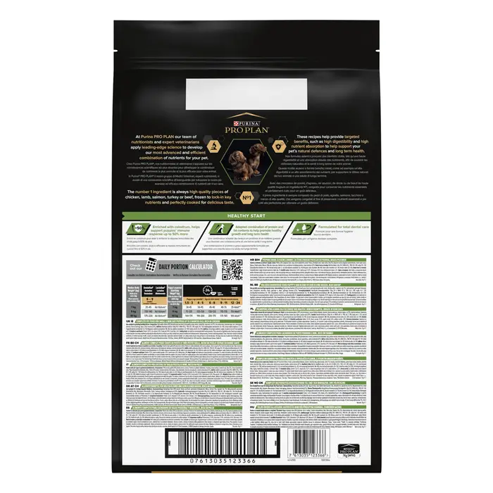 Сухий повнораціонний корм для цуценят малих порід. Також підходить для вагітних та лактуючих собак. Перший рік життя Вашого собаки (або два роки, якщо Ваше цуценя великої породи) є вирішальним для його здоров’я впродовж всього життя. В цей період Ваше цуценя потребує особливого харчування, щоб у нього сформувались міцні зуби, м’язи та кістки. А оскільки природний захист його організму ще не повністю сформувався, цуценя ще не може бути надійно захищеним. Цей період у житті собаки також називають «імунною прогалиною», коли існує високий ризик ураження інфекціями та порушеннями системи травлення. Щоб допомогти цуценятам отримати якнайкращий старт у житті, ветеринари та дієтологи Purina® розробили корм PROPLAN® PUPPY з OPTISTART®.
