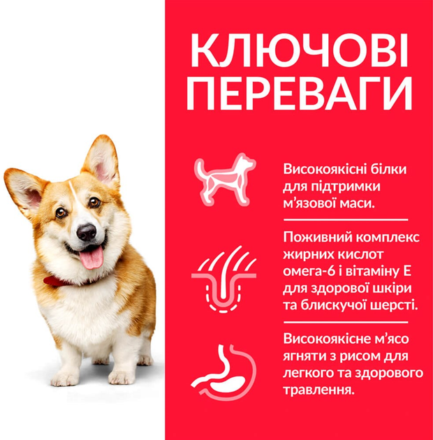 Hill’s Science Plan Adult Small&Mini – повнораціонне харчування для дорослих собак віком від 1 до 6 років і вагою до 10 кг, що забезпечує улюбленця необхідними вітамінами та мікроелементами.