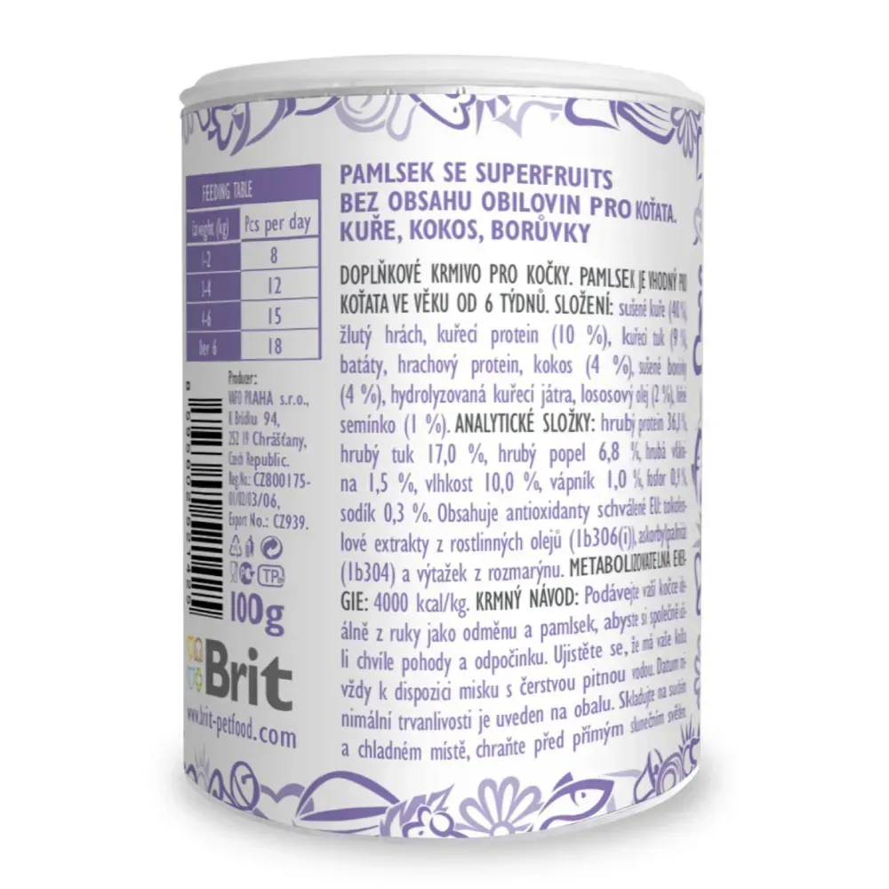 Ласощі для кошенят курка, кокос і чорниця Brit Care Superfruits Kitten 100 г