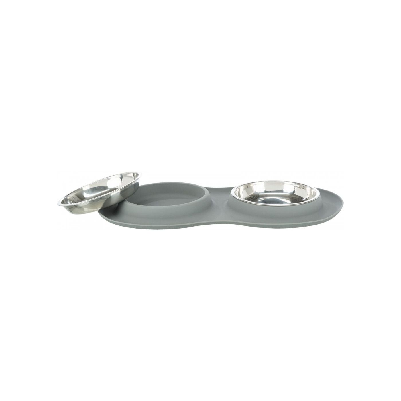 Миска Trixie для котів подвійна, сіра, метал/силікон, 2 × 0,3 л, d 16 см, 47 × 3 × 26 см (арт. 24981)