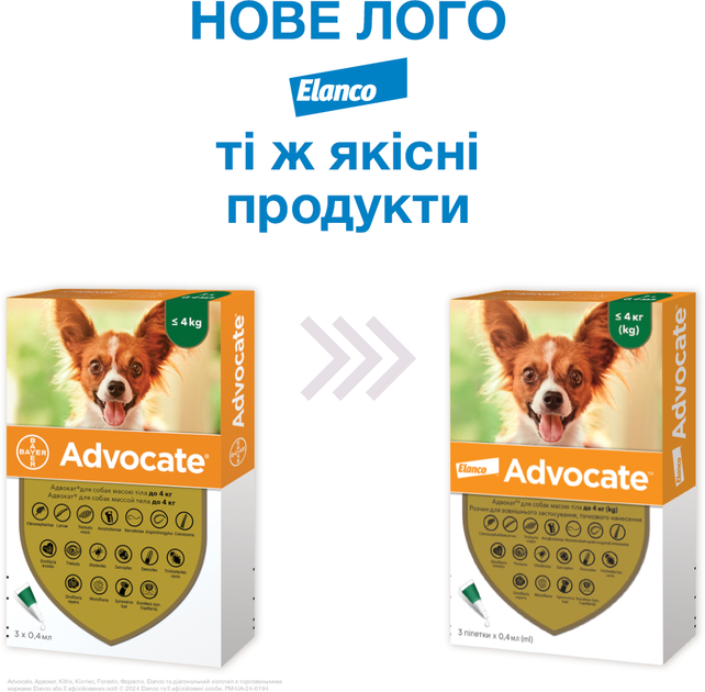 Краплі Elanco (Bayer) Advocate (Адвокат) від заражень ендо та екто паразитами для собак до 4 кг 3 піпетки