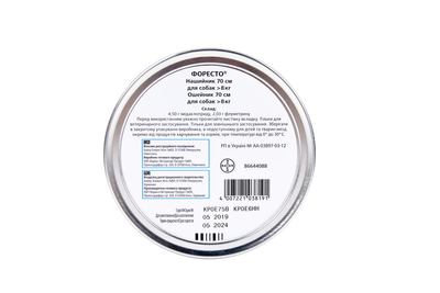 Форма випуску: нашийник герметично упакований у полімерній плівці та вкладений у картонну коробку. Для середніх і великих порід собак — нашийник завдовжки 70 см, для дрібних порід собак і кішок — 35 см.
